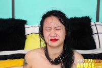 Asian whore returns to FacialAbuse for more face fucking. She’s up against Bootleg and Jay D and they don’t mess around when it comes to destroying a whore’s throat. The guys took turns shoving their hard dicks down her throat and they treat her like complete shit. She was manhandled, spit on and took some slaps to the face. All her holes were used and abused here. The guys fucked her in the ass and pussy in a double penetration. She was a complete mess by the end of the scene when they dumped their loads all over her face.